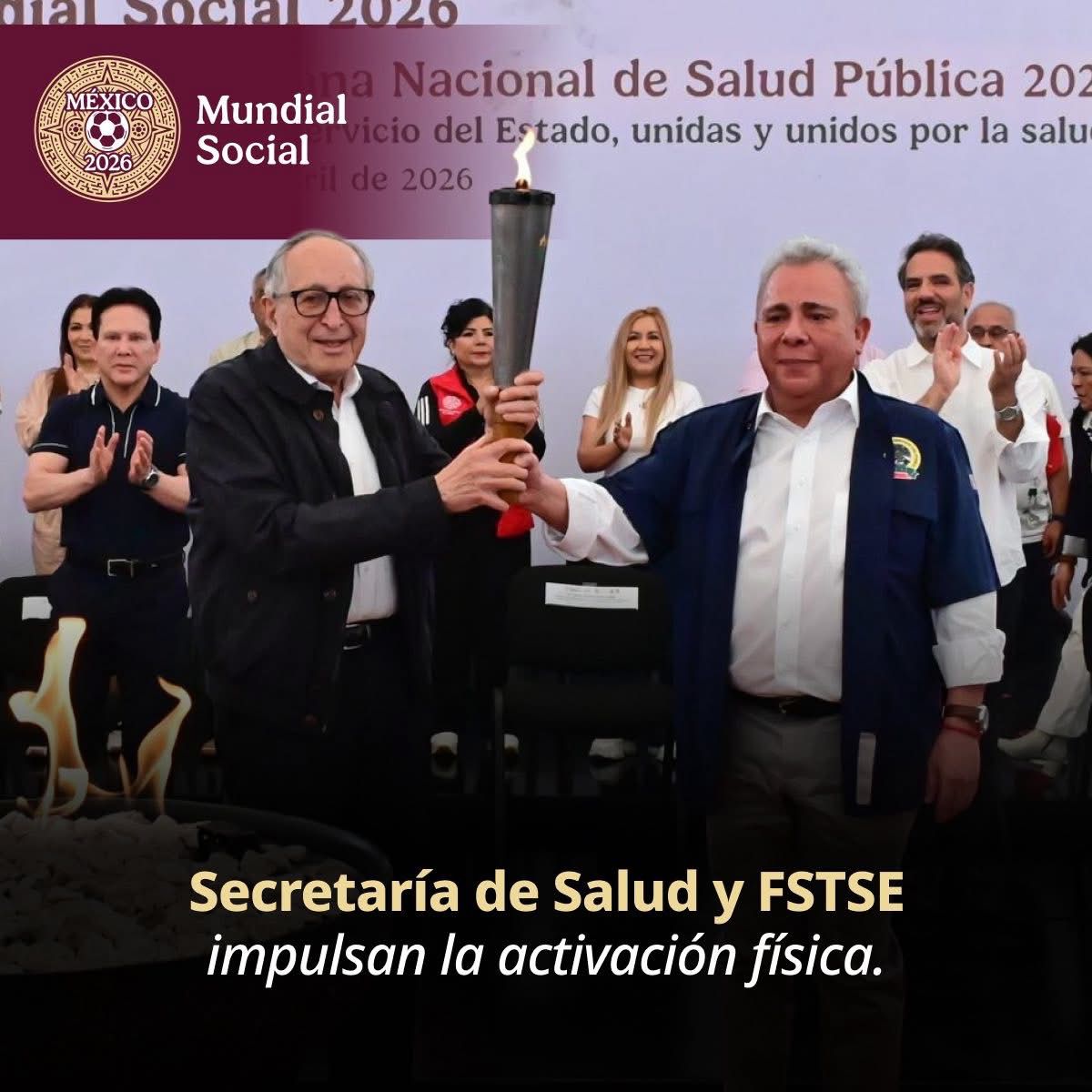 Ciudad de México, 19 de abril de 2026.– En un esfuerzo conjunto por fortalecer el bienestar de las y los trabajadores, la Secretaría de Salud, en coordinación con la Federación de Sindicatos de Trabajadores al Servicio del Estado (FSTSE) y organizaciones sindicales, llevó a cabo el evento “Salud en el Mundial Social 2026”, con el objetivo de consolidar la actividad física como un derecho y una práctica permanente en los centros de trabajo.