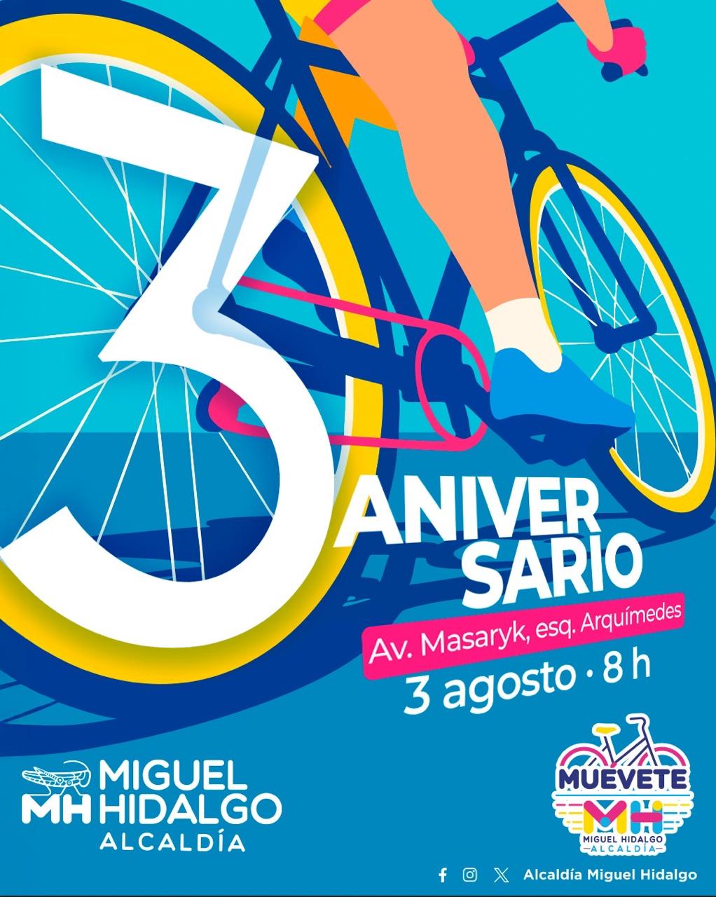 La alcaldía Miguel Hidalgo, celebró con entusiasmo el tercer aniversario del Programa Muévete MH, iniciativa que ha logrado reunir a más de 600 mil ciclistas a lo largo de sus 36 ediciones, generando una mayor convivencia familiar en el espacio público y promoviendo una movilidad sustentable.